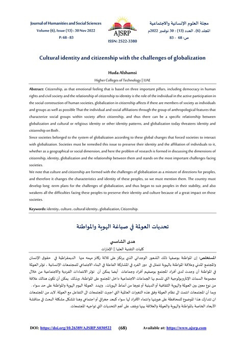 تحديات العولمة في صياغة الهوية والمواطنة (مجلة العلوم الإنسانية والإجتماعية; Vol. 6, No. 13)