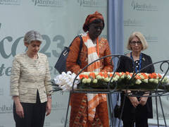 Never Forget, Never Again: Director-General at Kigali Genocide Memorial 2017-05-12 On 10 May 2017, UNESCO Director-General Irina Bokova visited the Kigali Genocide Memorial in Gisozi, a site for remembrance and learning, where she lay a wreath in memory of the victims of the 1994 genocide against the Tutsi of Rwanda.The memorial was chosen by survivors as a place of dignified burial for nearly 300,000 of the victims of the genocide, during which one million women, men and children were assassinated in just over 100 days.This is a site where survivors come to recollect and students to learn about the 1994 genocide and the importance of prevention and peacebuilding through educational programmes and tours.Ms Bokova was taken on a guided tour of the Memorial, which documents the historical roots of the gradual dehumanization of the Tutsis, goes on to describe the planning of the genocide and its execution, the muted response of the international community, the justice and reconciliation process through the international tribunal in Arusha and the local gacaca courts, and educational programmes developed to teach about the genocide and make peace a cross-cutting theme in school curricula. The memory of the savagery is chillingly rendered through life-size photographs of children captioned with their hobbies and the manner in which they were killed, along with belongings and remains of victims, machetes and other weapons used by the killers and testimonies of survivors. “Here in the Kigali Genocide Memorial, I wish to pay tribute to the memory of the victims of the genocide that targeted the Tutsis of Rwanda in 1994, and to the memory of all children, men and women who perished,” said the Director-General. “I wish to express UNESCO’s commitment to stand by the people of Rwanda in its struggle for truth and justice. This is a struggle to build solidarity with and between victims of all mass atrocities, on all continents, throughout history. This is a struggle to educate, to teach about the genocide, to equip people with skills and knowledge to resist hatred and to prevent other genocides. Never forget, never again”.During an earlier meeting on the margins of the Transform Africa Summit, she presented President Paul Kagame with UNESCO’s recent guide for policy makers on “Education about the Holocaust and Preventing Genocides”, noting also close cooperation with Rwanda on education to prevent genocide and build a culture of peace.