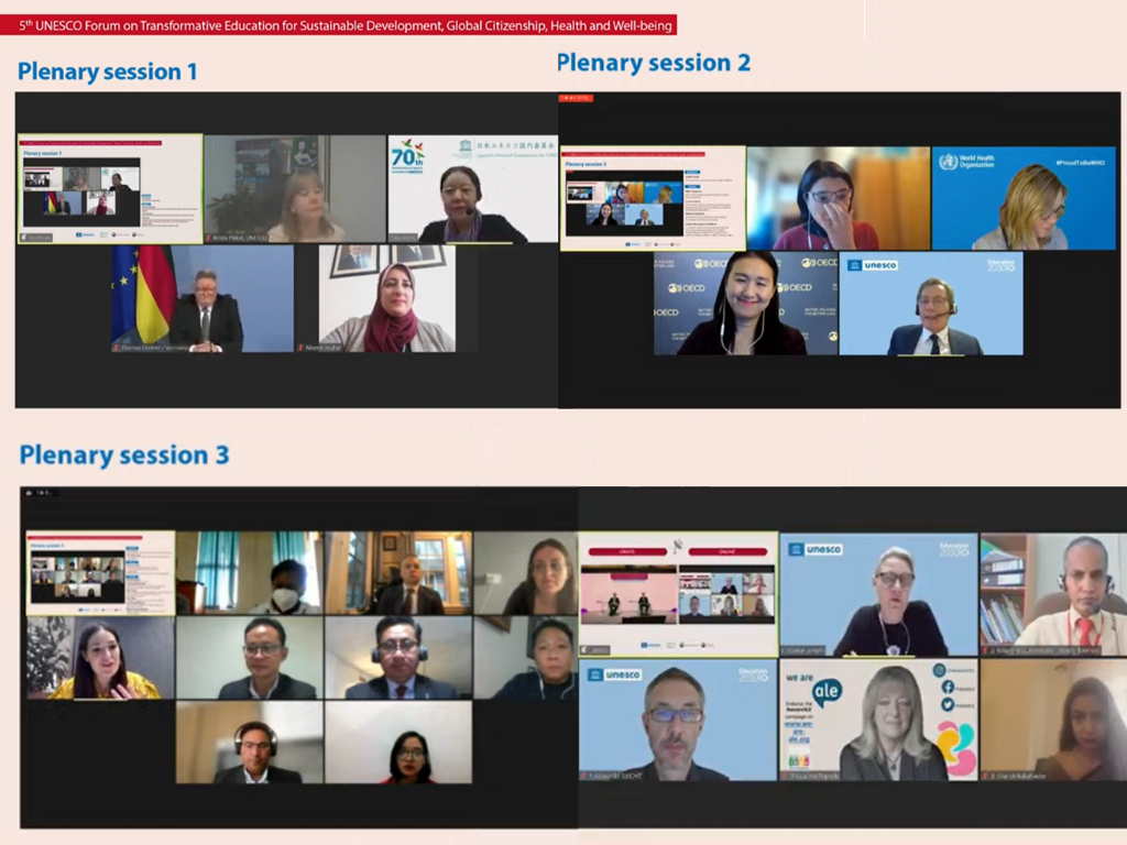 [Presentation Materials] 5th UNESCO Forum on Transformative Education for Sustainable Development, Global Citizenship, Health and Well-being 2022-02-21 5th UNESCO Forum on Transformative Education for Sustainable Development, Global Citizenship, Health and Well-being: The implementation of transformative education – where do we stand? Presentation materials from the 5th UNESCO Forum on Transformative Education are now available to download at the GCED Clearinghouse. From 29 November to 1 December 2021, the 5th UNESCO Forum on Transformative Education for Sustainable Development, Global Citizenship, Health and Well-being was held virtually from Seoul, Republic of Korea. Co-organized by UNESCO and APCEIU, and hosted by the Ministries of Education and Foreign Affairs of the Republic of Korea, the forum gathered about 3,000 online participants. In view of underlining the complementarity and synergy among diverse education programmes and approaches that have been furthering increased quality and relevance of education and learning, UNESCO has been moving towards an integrated approach to SDG Target 4.7 that brings together under the term of “transformative education” to open the way for innovation in education today. In recent years, many global, regional and national efforts have been made to monitor progress towards Target 4.7, or transformative education. Against the background of these efforts, which all have their respective strengths and weaknesses, and in light of the many efforts underway to implement transformative education, Member States and other stakeholders have increasingly voiced the need to understand better what concrete progress in transformative education looks like and how it can best be captured. The 5th Forum responded to this need. More information on the Forum To download the presentation materials, please click each link (name) in the list below: Opening Opening remarks· Ms Stefania Giannini, Assistant Director-General for Education, UNESCO· Ms Eun-hae Yoo, Deputy Prime Minister and Minister of Education, Republic of Korea· Mr Jong-ho Kyun, Director-General, Public Diplomacy and Cultural Affairs Bureau, Ministry of Foreign Affairs, Republic of Korea· Mr Hyun Mook Lim, Director, APCEIUModerators:· Mr Alexander Leicht, Chief, Section of Education for Sustainable Development, UNESCO· Ms Jeongmin Eom, Head of Office of Research and Development, APCEIU A moderated conversation on transformative educationModerator: Mr Eric Falt, Director, UNESCO New Delhi OfficeSpeakers:· Mr Nepomuceno A. Malaluan, Undersecretary of Education, Department of Education, Philippines· Mr Amr Abdalla, Professor Emeritus, the University for Peace, Egypt Strand 1 – What does progress in transformative education look like – a look at practices at the country level Plenary session 1 Moderator: Ms Krista Pikkat, Director, UNESCO Almaty OfficeSpeakers:· Mr Shadreck Majwabe, Director of the Department of Curriculum Development and Evaluation, Ministry of Basic Education, Botswana· Mr Thomas Greiner, Head of Subdivision,Lifelong Learning, Federal Ministry of Education and Research, Germany· Ms Taka Horio, Assistant Secretary-General, the Japanese National Commission for UNESCO & ASP National Coordinator, Ministry of Education, Culture, Sports, Science and Technology, Japan· Ms Niveen Jouhar, Member of Directorate of Curricula, Ministry of Education, Jordan Concurrent sessions 1 Session 1.1 – PolicyModerator: Ms Akpezi Ogbuigwe, Founder, Anpez Centre for Environment and Development, NigeriaSpeakers:· Mr Arjen Wals, UNESCO Chair, Social Learning and Sustainable Development, University of Wageningen, Netherlands· Ms Anna-Karin Johansson, Swedish National Commission for UNESCO, Ministry of Education, Sweden· Mr Felipe de Souza Costa, São Paulo Municipal Secretariat of Education, Brazil· Mr El Hadji Gueye, Founder, Banlieu UP, Senegal Session 1.2 – Curricula, pedagogy and assessmentModerator: Mr Yao Ydo, Director, UNESCO International Bureau of Education (IBE)Speakers:· Dr Esther Care, Professor, University of Melbourne, Australia· Ms Lynndina Essack, Senior Education Officer, Department of Education Services, Ministry of Education, Seychelles· Mr Daehoon Jho, Professor, Sungshin Women's University, Republic of Korea· Dr Jinan Karameh Chaya, Principal, Al Manar Modern School (UNESCO Associated Schools Network member), Lebanon Session 1.3 – Learning environmentModerator: Mr Chris Castle, Chief of Section of Education for Health and Well-being, UNESCOSpeakers:· Prof. Didier Jourdan, UNESCO Chair and Head of the World Health Organization (WHO) Collaborating Center "Global Health & Education"· Prof. James O’Higgins Norman, Director of the National Anti-Bullying Centre, the Dublin City University, Ireland & UNESCO Chair on Tackling Bullying in Schools and Cyberspace· Ms Bolorchimeg Dagva, Adolescents and HIV Specialist, UNICEF, Mongolia Strand 2 – What does progress in transformative education look like – a look at recent global and regional data Plenary session 2 Moderator: Mr Sobhi Tawil, Director, Future of Learning and Innovation, UNESCOSpeakers:· Ms Miho Taguma, Senior Policy Analyst on OECD Learning Compass 2030 and SDG 4.7· Ms Leanne Riley, Unit Head, Surveillance, Monitoring and Reporting, Department of Noncommunicable Diseases (NCDs), World Health Organization· Ms Valeria Damiani, Associate Professor, La Libera Università Maria SS. Assunta (LUMSA) University, Italy· Mr Carlos Henríquez Calderon, Coordinator of the Latin American Laboratory for Assessment of the Quality Education (LLECE), Regional Bureau for Education in Latin America and the Caribbean (OREALC), UNESCO Santiago Office Concurrent sessions 2 Session 2.1 – How to address social and emotional dimensions of learning in assessment?Moderator:· Ms Cecilia Barbieri, Chief, Section of Education for Global Citizenship & Peace, UNESCOSpeakers:· Ms Nandini Chatterjee, Senior National Project Off