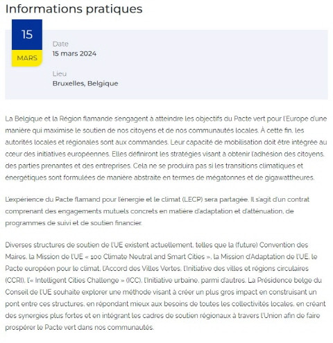 Bruxelles Conférence: «Traduire le Pacte vert pour l’Europe en actions locales » 15 mars 2024