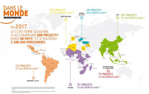 Le CCFD-Terre Solidaire outille les professionnels et le grand public 2018-10-08 Fondé dans les années 60, le Comité catholique contre la faim et pour le développement-Terre solidaire (CCFD-Terre Solidaire) est, selon son site web, la première ONG française de développement. Son bureau-chef se situe à Paris. Les actions de l’organisme visent à enrayer la faim en luttant contre ses causes plutôt qu’en atténuant ses conséquences. En préconisant une approche d’autonomisation, plutôt que d’intervention, le CCFD-Terre Solidaire « soutient plus de 697 projets initiés par des acteurs locaux dans 66 pays. Le CCFD-Terre Solidaire s’appuie sur un réseau de 15 000 bénévoles pour sensibiliser les Français à la solidarité internationale et agit auprès des décideurs par des actions de plaidoyer pour construire un monde plus juste. » (Pour en connaître davantage sur les projets soutenus par le CCFD-Terre Solidaire, consultez:https://ccfd-terresolidaire.org/projets/) Le CCFD-Terre Solidairepublie 5 fois par an son magazine Faim et Développement et affiche régulièrement sur son site des communiqués et des dossiers qui documentent, analysent et font des recommandations sur divers enjeux actuels. Par ailleurs, le CCFD-Terre Solidaire a élaboré une trousse d’outils d’éducation à la citoyenneté destinée au grand public, dont trois sont adaptés spécialement pour les enseignants du primaire au lycée. (Pour explorer les outils du CCFD-Terre Solidaire, consultez :https://ccfd-terresolidaire.org/mob/nos-outils-d-animation/) Chaque année, le CCFD-Terre Solidaireco-organise le Week-end de Formation à l’animation en Éducation à la citoyenneté et à la Solidarité Internationale (WESCI) pour permettre aux professionnels du milieu de renforcer leurs connaissances et leurs pratiques. L’édition de 2018 s’est tenue du 2 au 4 février à Paris.(Pour obtenir plus de renseignements sur le WESCI, consultez :https://ccfd-terresolidaire.org/IMG/pdf/bull_presentation_programme_2018.pdf) L’image vient du site web suivant : https://ccfd-terresolidaire.org/projets/