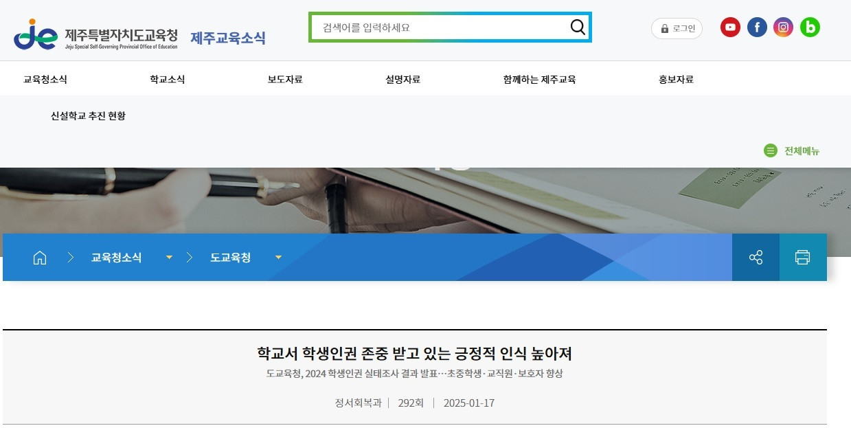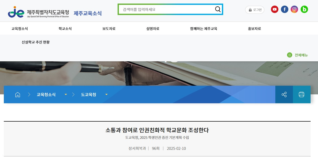 소통과 참여로 인권친화적 학교문화 조성한다 2025-02-19 소통과 참여로 인권친화적 학교문화 조성한다 - 도교육청, 2025 학생인권 증진 기본계획 수립 제주특별자치도교육청(교육감 김광수)은 지난 5일 학생인권의 실질적인 보장과 인권친화적 학교문화 확산을 위해 2025 학생인권 증진 기본계획을 수립하여 관련 기관 및 도내 각 학교급에 보급하였다. 학교교육활동을 통한 학생인권 실현을 비전으로 ▲학생인권 보호 및 증진 ▲인권존중 교육환경 조성 ▲인권증진 협력체계 구축을 주요 과제를 세웠다. 이를 통해 교육과정과 연계한 학교 학생인권교육 운영을 지원하고 인권친화적 학교문화 확산을 위한 인권의식 제고를 지원하고자 한다. 지난해와 비교하여 인권증진 협력체계 구축과제에서 교육공동체의 인권 보장 협력체계를 확대 및 강조하여 ▲교육공동체 인권의식 제고 활동 강화 ▲교육공동체 인권 보호를 위한 지원 확대 ▲교육공동체 인권 증진 단위학교 역량 강화를 세부 과제를 마련하였다. 세부 사업으로는 학교별 여건에 맞는 학생인권교육 운영으로 학생 대상 학기당 2시간 이상(연간 총 4시간 이상) 학생인권 교육을 통해 학교구성원 상호 존중과 인권친화적 학교문화를 조성하고 인권친화적 학생생활규정 개정 컨설팅도 운영할 예정이다. 또한 학생인권교육 역량 강화와 인권감수성 함양 교육 등을 위해 관리자 및 교원 대상 역량 강화 연수를 비롯한 찾아가는 학생인권교육을 운영하게 된다. 지난해에는 유니세프 아동친화학교 운영 10개교를 지속 운영하였고 올해에는 씨앗학교(1년차)를 5개교 신규 지정 공모를 시작으로 관련 설명회는 오는 18일에 실시할 예정이다. 도교육청 관계자는“학생인권 존중 기반 정책 추진과 학생인권교육을 통한 실질적인 학생인권이 보장될 수 있기를 기대한다”라며 “ 학교구성원의 인권의식 제고 및 학생인권 증진계획의 실천으로 인권친화적 학교문화 확산에 지속적으로 노력하겠다”고 말했다. 2025 학생인권 증진 기본계획은 제주특별자치도교육청 누리집(https://buly.kr/EdsZH4o)에서 확인할 수 있다. URL: 원문 바로가기