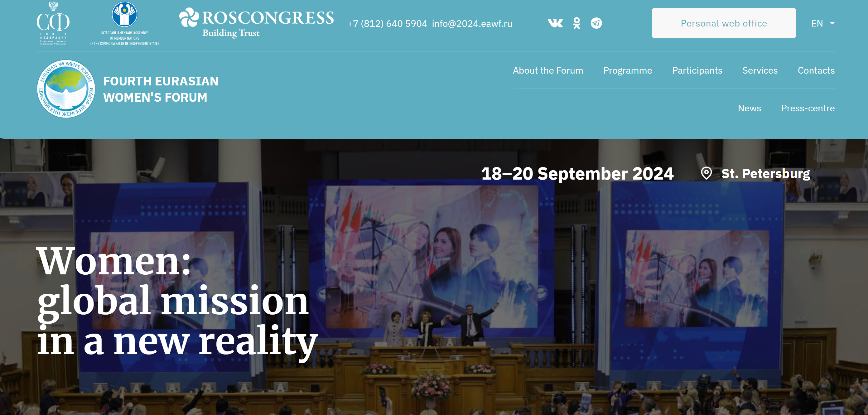 Fourth Eurasian Women's Forum 18 сентября 2024 г. ~ 20 сентября 2024 г.