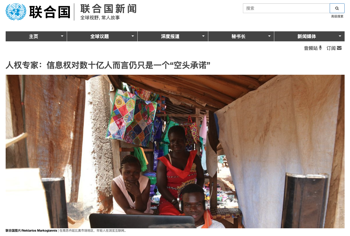 人权专家: 信息权对数十亿人而言仍只是一个“空头承诺” 2023-10-02 在9月28日促进普遍获取信息国际日到来之际,联合国意见和表达自由权特别报告员艾琳·汗(Irene Khan)呼吁各国政府加紧努力,缩小“数字鸿沟”,消除人们在行使信息权方面面临的种种障碍。 艾琳·汗说:“如果无法实现人人享有普遍和有意义的互联互通,获取信息的权利对全世界数十亿人来说就只是一个空头承诺。”今年国际日重点聚焦网络空间。她说,互联网的可用性和可及性并不平等,这“加深了现有的不平等,并在性别、地理、种族、收入和数字素养方面引发了新的不平等,增加了社会中最边缘群体的脆弱性。”推动民主的“氧气”艾琳·汗表示,信息权就好比“氧气”,没有信息权,民主和发展都无法取得进展。她说,无论从网上还是线下获取信息,都能够让人们更好地了解情况,更好地参与决策,从而提高发展成果的质量和可持续性。此外,通过赋予公民、民间社会和媒体权力,让政府和企业承担责任,民主也会变得更加有意义。法律和限制根据艾琳·汗在今年4月份发表的最新报告,许多国家已经通过了有关获取信息的法律,有些国家还承认接入互联网为一项法定权利。然而,她说,“坏消息”是,这些法律往往没有得到有效执行。调查记者、人权维护者和其他民间社会代表在获取网上或线下的信息时,还是会遭到各种手段的限制或拒绝。艾琳·汗报告说,过去五年来,超过74个国家的政府曾经短期或长时间降低上网速度、封锁移动通信甚至关闭互联网。这些措施阻碍了人们信息获取,影响了健康、教育和其他基本服务。对可持续发展至关重要艾琳·汗说:“无论是应对气候变化和流行病等全球挑战,还是消除歧视、排斥和暴力等根深蒂固的顽疾,青年、民间社会和独立媒体在网上和线下的信息、言论自由和积极参与都至关重要。”她指出,普及和可负担的互联网接入和信息获取是可持续发展目标的“明确目标”,是建设一个更加公正公平的世界的蓝图。上周,世界各国领导人齐聚纽约,参加联合国大会高级别周,出席可持续发展目标峰会,并就加强在2030年最后期限之前实现可持续发展目标做出了新的承诺。艾琳·汗敦促各国将在峰会上做出的承诺转化为具体行动。人权专家人权专家是人权理事会特别程序的一部分。特别程序是联合国人权系统中最大的独立专家机构,是人权理事会独立的实况调查和监督机制的总称,负责处理世界各地的具体国别状况或专题问题。特别程序的专家在自愿的基础上工作,他们不是联合国工作人员,独立于任何政府或组织。他们以个人身份行使职责,不因其工作收到酬劳。