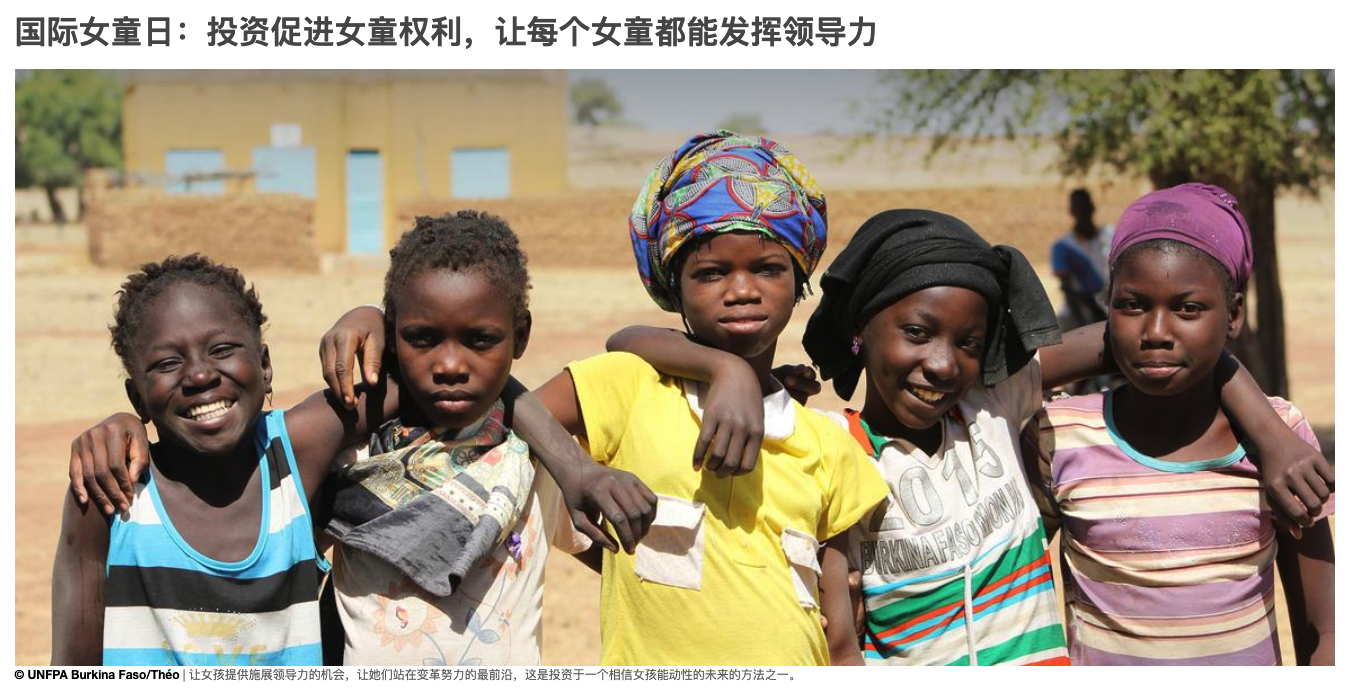 国际女童日: 投资促进女童权利,让每个女童都能发挥领导力 2023-10-17 在10月11日国际女童日之际,联合国呼吁投资促进女童权利,致力于实现一个相信女童的行动力、领导力和潜力的未来。 秘书长古特雷斯在为这一国际日发表的致辞中表示,距离实现可持续发展目标的2030年最后期限还有一半时间,但世界却在辜负女童。 女童的严峻处境 古特雷斯表示,按照目前的趋势,结束童婚还需要300年。如果不做任何改变,到2030年,1.1亿本应进入课堂的年轻妇女和女童将无法进入课堂。3.4亿妇女和女童仍将忍受极端贫困的煎熬。 同时,针对女童的旧式歧视仍在继续,在某些情况下甚至愈演愈烈。阿富汗的女童无法行使其最基本的权利和自由,她们被困在家中,没有希望接受教育或实现经济独立。 此外,新形式的偏见和不平等正在出现。数字鸿沟意味着许多女童被排除在网络世界之外。基于男性和男童体验的算法正在放大性别歧视并使其数字化。 女童正在奋起反击 与此同时,古特雷斯指出,“在世界各地,女童正在奋起反击——在足球场上、在学校中、在公共场合,直面性别歧视,对抗陈规陋习,创造变革。我们必须与她们站在一起。” 他说:“我为使可持续发展目标走上正轨而提出的“可持续发展目标刺激计划”正在获得越来越多的支持。我们必须投资于今年国际女童日的主题——女童的领导力,以支持女童实现她们的抱负,促进性别平等。当妇女和女童发挥领导作用时,她们可以转变态度、创造变革,推进满足其需求的政策和解决方案。” “妇女和女童可以带领我们走向更加公平的未来。值此“国际女童日”之际,让我们放大女童的声音,再次承诺共同努力,建设一个每个女童都能发挥领导作用并茁壮成长的世界。” 促进女童权利,增强她们的福祉和领导力 从孕产妇卫生保健、对少女母亲的育儿支持,到数字和生活技能培训,从全面性教育到幸存者支助服务和暴力预防计划,这些关键领域都迫切需要更多的关注和资源,才能使女童得以实现自己的权利并充分发挥潜力。 联合国儿童基金会儿基会和各国政府及民间社会伙伴共同展望这样一个世界:女童可以影响政府政策和支出,从而为企业运营提供规则和规范,设定研究和创新的优先事项。这不应该是异想天开,而应该成为常态。 纪念活动 2023年的国际女童日纪念活动(10月11日上午)由儿基会和国际计划组织举办,旨在团结少女和少女权利倡导者,包括联合国领导人、非政府组织、企业和政府。活动展望了一个女童积极影响政府政策、商业实践和研究重点的世界。 URL:https://news.un.org/zh/story/2023/10/1122832