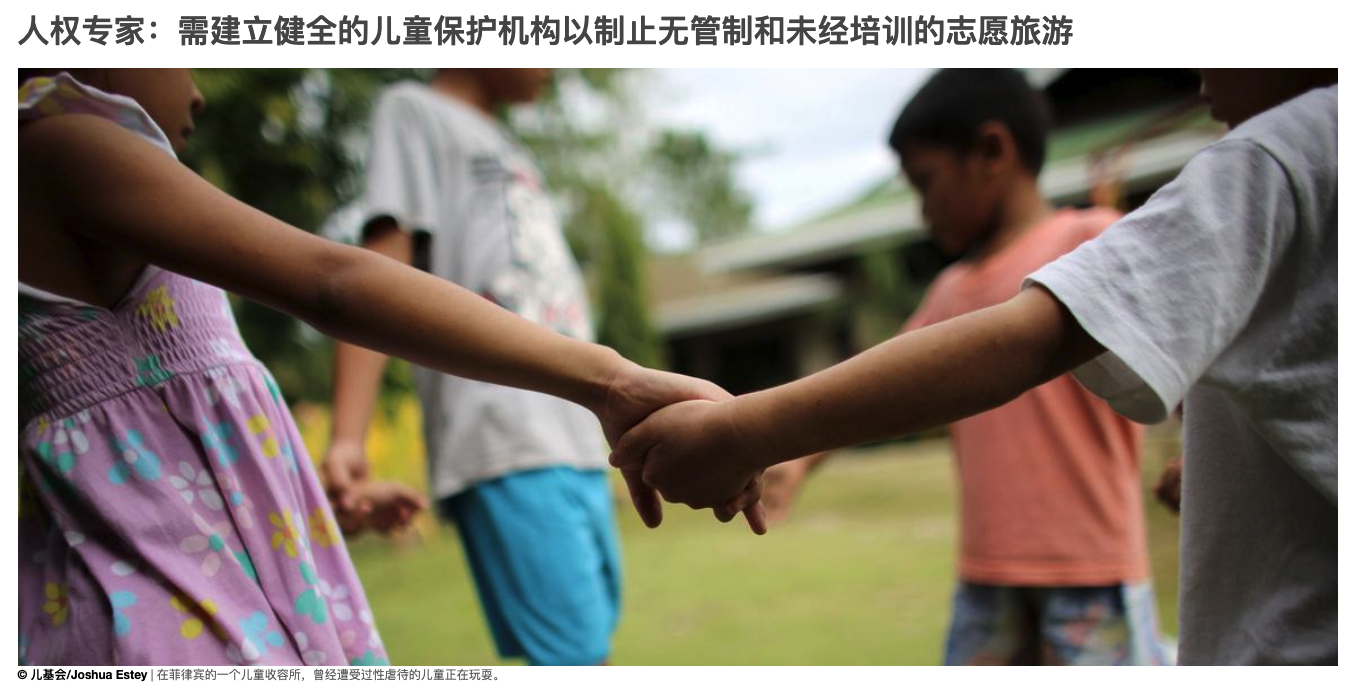 人权专家: 需建立健全的儿童保护机构以制止无管制和未经培训的志愿旅游 2023-10-17 一位联合国独立人权专家日前在联合国大会上表示,必须对志愿旅游进行管理和监督,以保护儿童免受剥削和性虐待。联合国买卖儿童和儿童性剥削问题特别报告员辛哈特(Mama Fatima Singhateh)在提交给联大的报告中指出,大流行后的复苏导致旅行和旅游业大幅增长,令儿童面临风险,尤其是在基本上不受监管的志愿旅游部门。风险加剧志愿旅游是旅游者在旅途中参加志愿工作的一种旅游形式,他们通常是为慈善机构工作。辛哈特说:“技术进步和旅行增长以及志愿旅游等新形式旅游和旅行产品的兴起,使儿童面临被剥削的风险,特别是在法律保护薄弱和儿童保护体系不健全的地方。”良好做法与建议报告重点介绍了一些良好做法,并就制定、加强和实施儿童保护标准以解决和应对这一问题提出了建议。例如,敦促各国政府采取措施,禁止在儿童保育机构和设施中使用不熟练和未经培训的志愿者;规范旅行和旅游业中的私营部门,确保其遵守商业和儿童权利义务,并在所有政策制定和行动中执行“不伤害”原则。辛哈特还强调了制定机构间跨部门倡议的重要性,这些倡议能汇集儿童保护部门、教育、媒体、旅游和宗教组织的倡导者,促进人们采取行动解决和应对志愿旅游的不利影响,特别是在孤儿院环境中的不利影响。合作是关键最后,辛哈特敦促所有利益攸关方努力有效执行《旅游道德框架公约》、《保护儿童免受旅行和旅游中的性剥削行为守则》以及《工商企业与人权指导原则:实施联合国“保护、尊重和补救”框架》。她说:“政府、私营部门、民间社会和其他利益攸关方在实施旅游政策和战略方面协同合作,是在保护儿童免受志愿旅游不利影响方面取得进展的关键。”人权专家马玛·法蒂玛·辛哈特于2020年3月被联合国人权理事会任命为买卖儿童和儿童性剥削问题特别报告员,于2020年5月1日履职。辛哈特是一名训练有素的律师,拥有近20年从业经验,目前担任人权与法律和体制改革方面的国际顾问。她持有赫尔大学国际商法硕士学位,并在儿童权利规划、仲裁和调解以及起草立法方面接受过多种培训。特别报告员是人权理事会特别程序的一部分。特别程序是联合国人权系统中最大的独立专家机构,是人权理事会独立的实况调查和监督机制的总称,负责处理世界各地的具体国别状况或专题问题。特别程序的专家在自愿的基础上工作,他们不是联合国工作人员,独立于任何政府或组织。他们以个人身份行使职责,不因其工作收到酬劳。